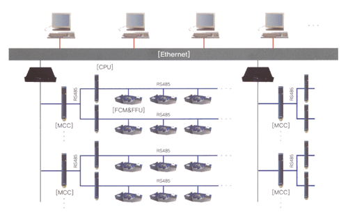 중앙제어시스템으로 구성되어 있습니다. 이 시스템은 FFU의 그룹설정, 상태감시, 속도제어, 온도변화나